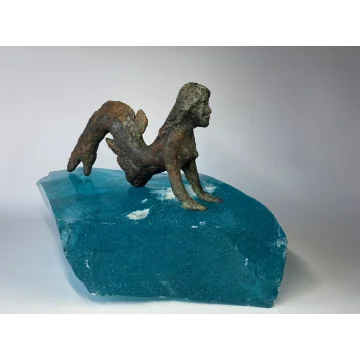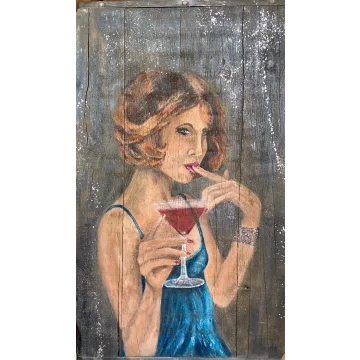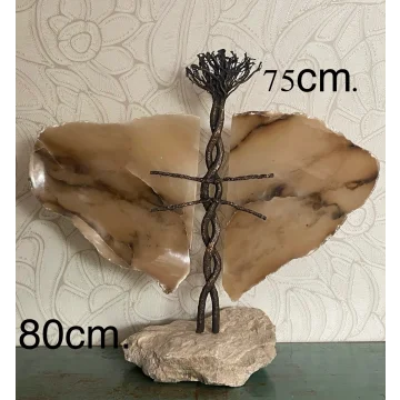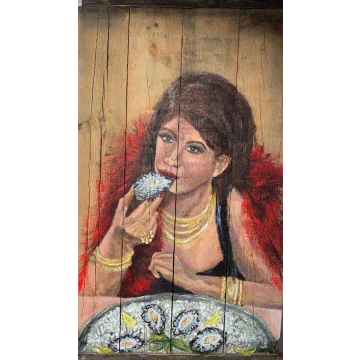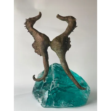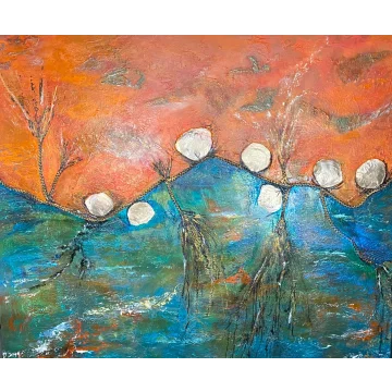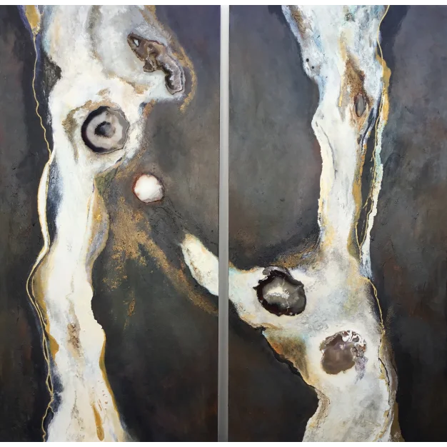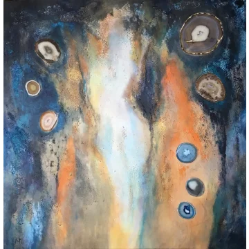 2 paintings, equal size, with gemstones, acrylics and mixed media. Both paintings with black/golden frames.