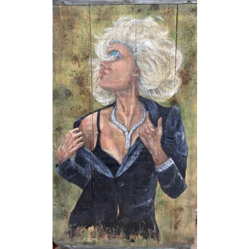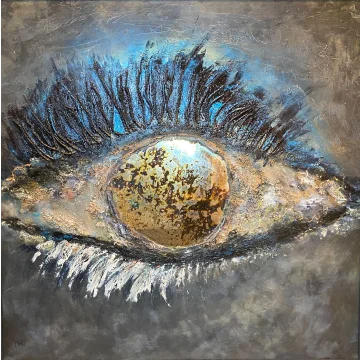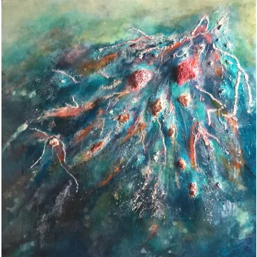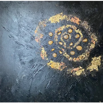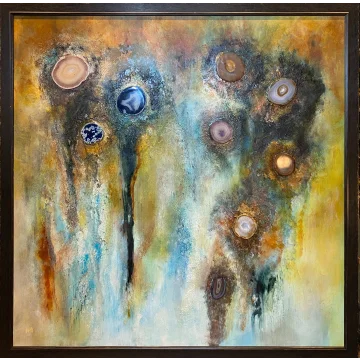 2 dipinti, della stessa dimensione, con gemme, acrilici e tecniche miste. Entrambi i dipinti con cornici nere/oro.